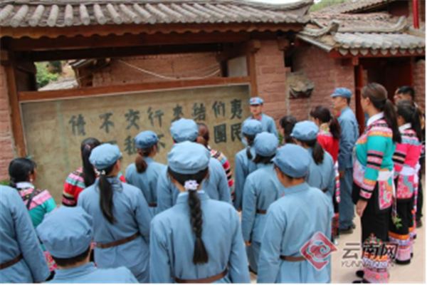 木高古红军长征体验路段的终点便是木高古彝寨,进入寨子映入眼帘的便是“夷民们同红军联合打龙云去”“夷民们团结起来实行不交租不还债”两条红军标语。镇党委书记付平海向大家介绍这两条标语的历史。在参观完红军标语后,队员们表示,从标语的字里行间既感受到红军坚定的信念和奋斗不息的革命精神,也感受到红军爱国为民的情怀和体恤百姓疾苦的大爱。