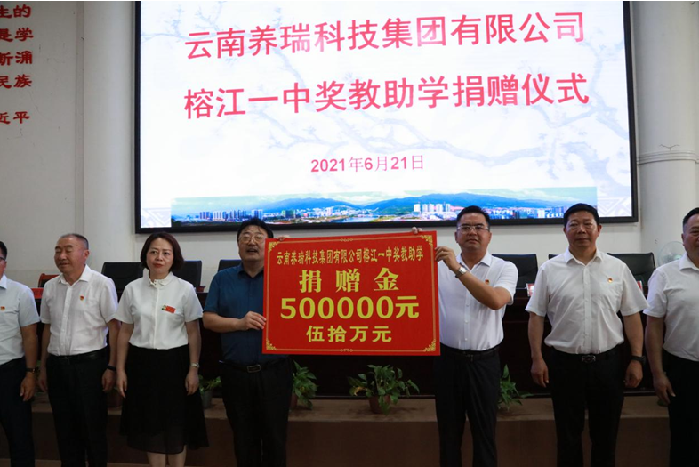 按照党史学习教育“我为群众办实事”活动要求,为升华初心、践行使命, 切实做到学党史、悟思想、办实事、开新局,助力少数民族地区教育事业发展,6月21日上午,集团在榕江县第一中学开展奖教助学活动,榕江县人民政府副县长陈尚京,县政协副主席金文凤,出席捐赠仪式。集团党委书记、董事长、总裁邵全向榕江县第一中学捐款50万元。邵全在捐赠仪式上致辞。他鼓励大家要好好学习,不辜负党和国家的厚望、社会各界的希望和父母亲友的期望。