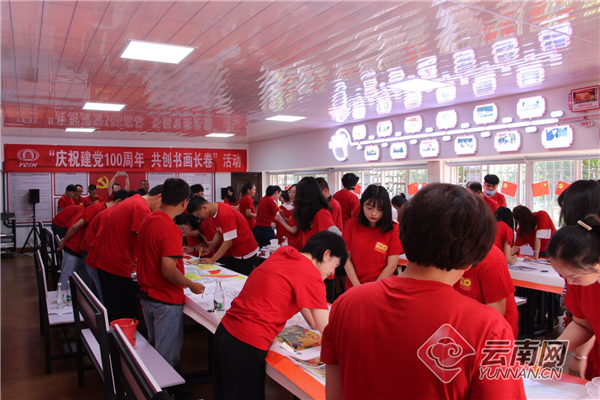“丹青溢彩书盛世,翰墨怡情颂党恩。”6月16日,位于昆明市新闻路的云南建投第三建设有限公司喜庆非凡,在70名员工的共同参与下,一幅展现建党百年光辉历程以及企业70年发展成果的23米书画长卷制作完成。长卷的策划、制作与展示,增强了党史学习教育的直观性、艺术性和针对性,成为企业党史学习教育的一份鲜活素材及一次生动实践。