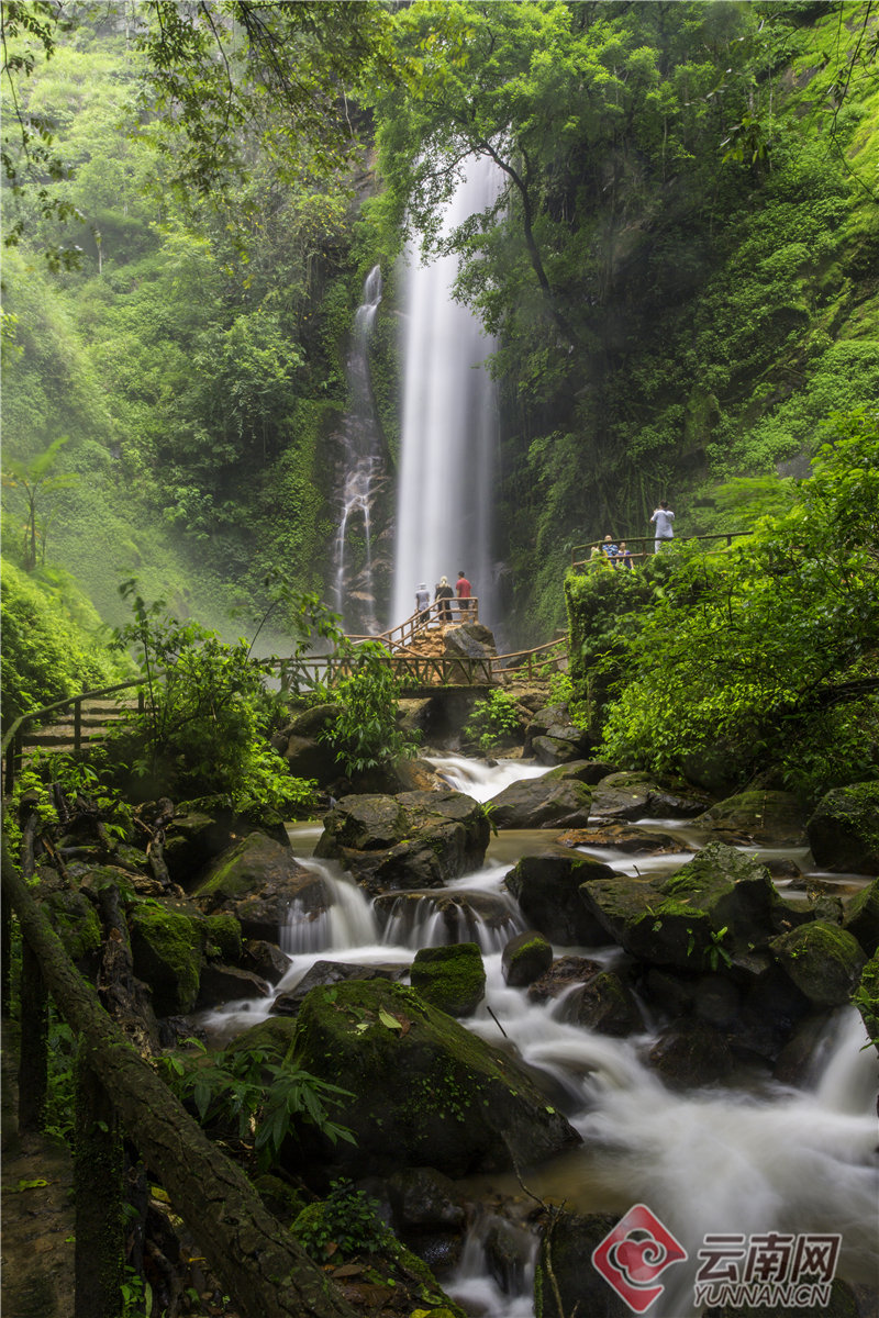 漫步雨林中,流瀑倚悬壁高挂,呈缎玉绸光之色,三叠激浪,水云烟雾难分,卷携几缕花香萦绕在你的周围。仰首,太阳金色的光点穿透层层密林,留下光影的斑驳,更添几份尘世皆抛的禅意。