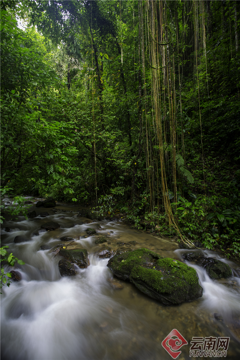 “莫里”在傣语中意为“美丽的瀑布”,沿溪流溯源而上,就能知晓这片雨林为何得名。这里,山峦叠翠,万木峥嵘,高峰悬崖间雪飞云涌,响声雷鸣,瀑布下又有温泉涌出,叫人称绝。