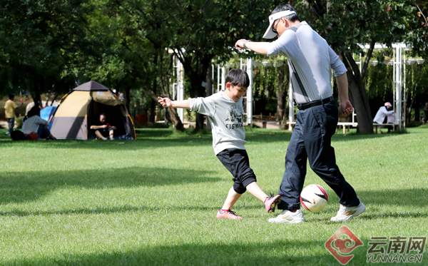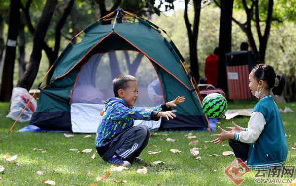 “十一”假日,秋日阳光明媚。在昆明西华公园,走出家门的春城市民在草地上搭起帐篷露营、在湖面上划船赏景游玩……游乐场中传出阵阵欢乐的笑声,处处呈现出亲子融融的愉悦场景。