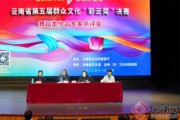 11月7日下午,云南省第五届群众文化“彩云奖”舞蹈类作品专家点评会在云南省文化馆召开。国家一级编导、中国煤矿文工团原创作室主任丁瑞华,国家一级编导、中国东方演艺集团中国歌舞团原团长甘露,国家一级编导、湖北省舞蹈家协会主席唐静平对此次参赛的25个作品进行了逐一点评。