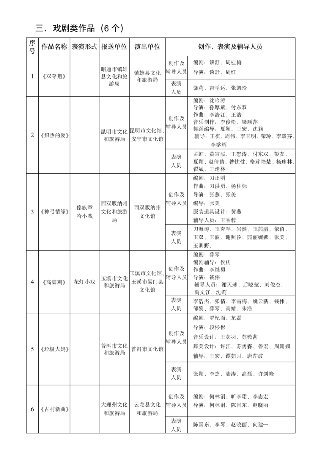 原标题:云南省文化和旅游厅关于云南省第五届群众文化“彩云奖”获奖作品名单的公示
