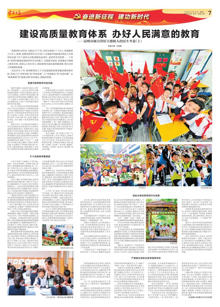 ●建设高质量教育体系 办好人民满意的教育——昆明市倾力答好立德树人的民生考卷(上)
