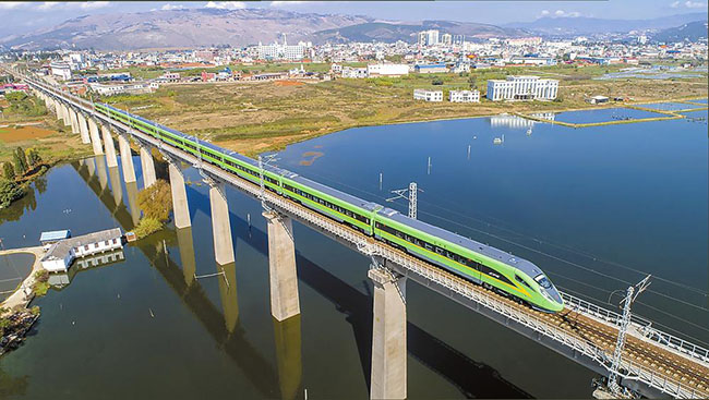 中老铁路是两国互利合作的旗舰项目。铁路一通,昆明到万象从此山不再高、路不再长。双方要再接再厉、善作善成,把铁路维护好、运营好,把沿线开发好、建设好,打造黄金线路,造福两国民众。