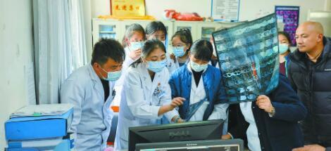 3月9日17时,一场临时“业务探讨会”在玉树藏族自治州人民医院内科医生办公室举行。科室几个年轻人围着电脑前的曹阳月,一边看着电脑上患者的病历,一边把自己的困惑和盘托出。