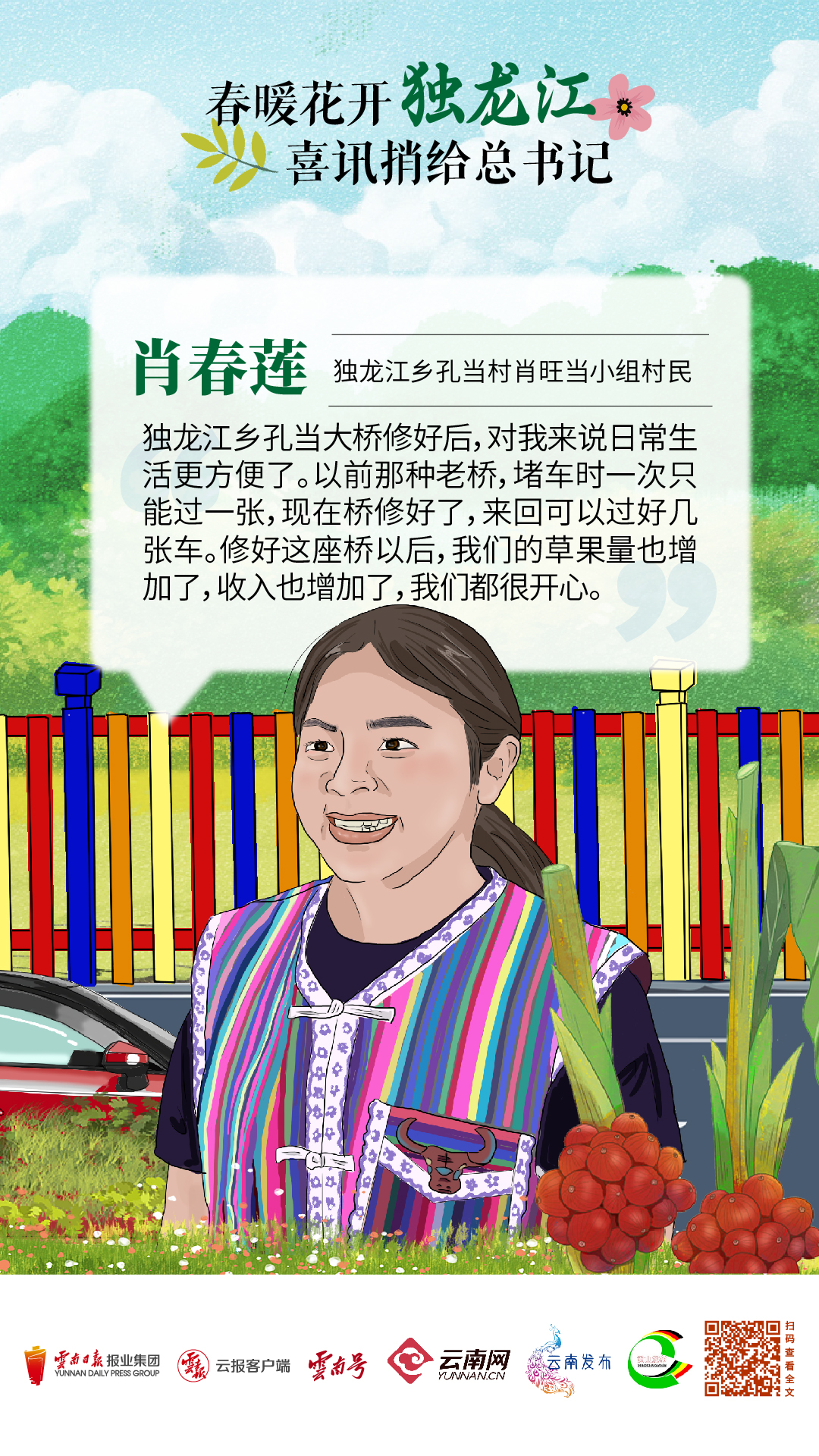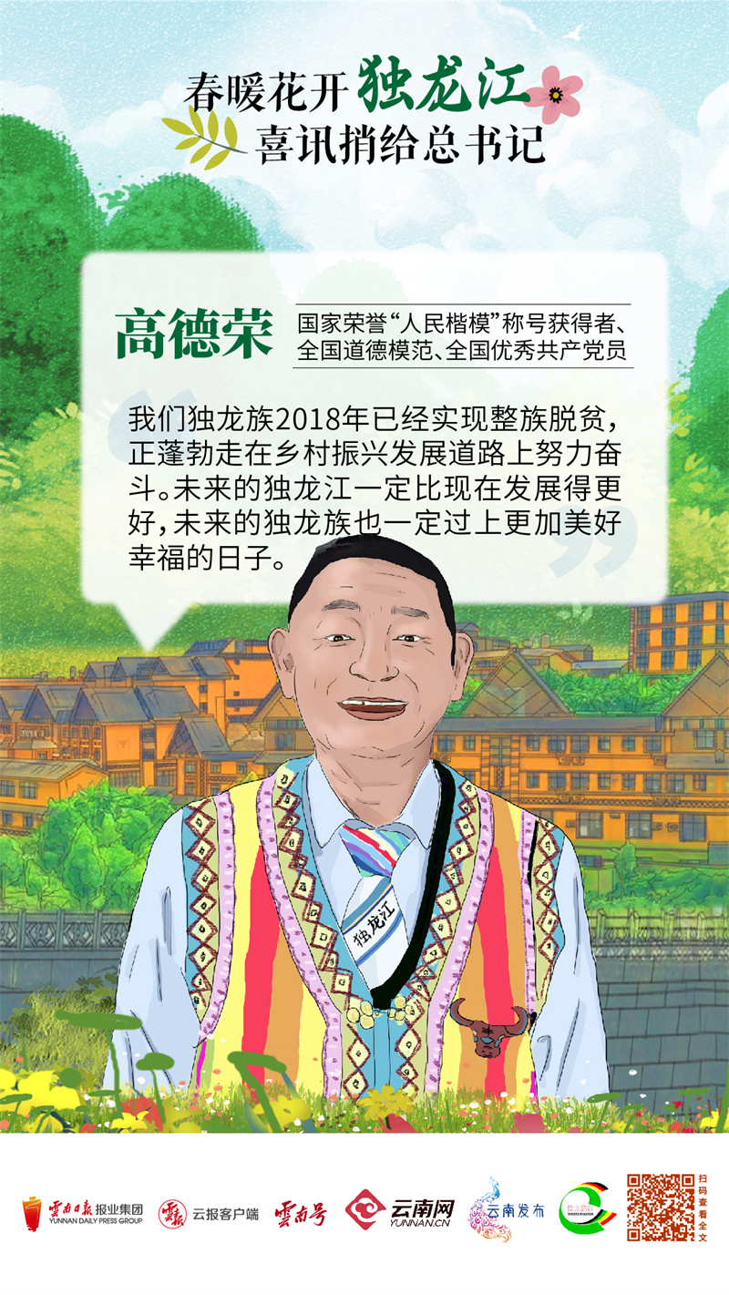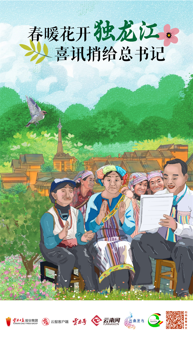 春暖花开独龙江,山川秀美人欢乐,乡亲们想把乡里的好消息告诉总书记。