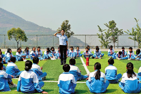 在第八个全民国家安全教育日到来之际,南涧彝族自治县公郎镇开展形式多样的主题宣传教育活动,提高公民的国家安全意识。图为该镇派出所民警与公郎镇沙乐小学的学生一起开展主题活动。通讯员 适志宏 摄