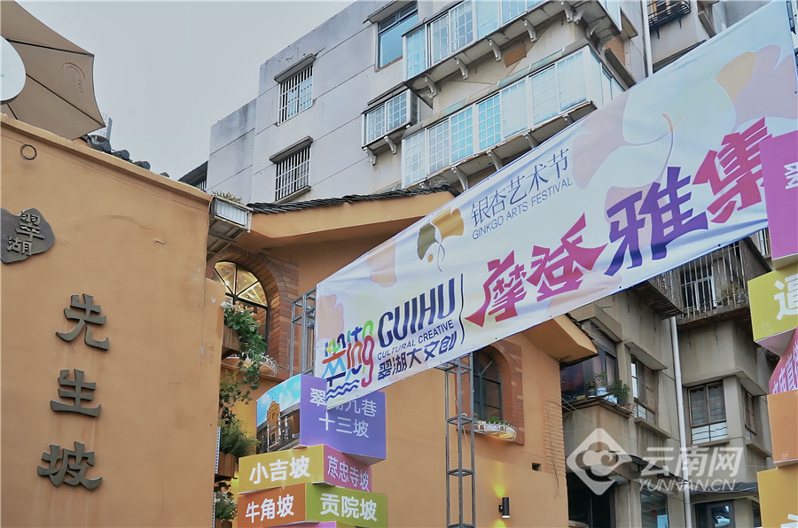 正因为商户嵌入住户烟火气浓,华山的小微经济连着居民生活,街道精准施策、整合多方资源,坚持品牌化建设思路包装企业,为企业创新文化提供了广阔土壤,为市民提供了多样化的优质文化供给。在华山街道支持下。辖区企业开发了“干了这杯翠湖水”饮品、樱花过桥米线、文创冰棒、九巷十三坡书签等“翠湖大文创”产品;街道推出“翠湖四时”品牌,围绕翠湖四季变换特点组织开展“花Young五华、荷悦五华、杏绘五华、鸥歌五华”系列主题活动;自2020 年连续举办3届“银杏艺术节”,经过努力,“银杏艺术节”主题文化品牌曾创下抖音话题量430余万次、抖音全城榜第2,观看直播近12万人、单日营收23余万元等好成绩,进一步凝聚了翠湖片区文化气息和人文情怀;结合林徽因的故事举办“你是人间四月天”主题活动和墙绘掌机活动,为市民和游客带来了丰富的文化体验,为经济发展消费注入了新的信心。
