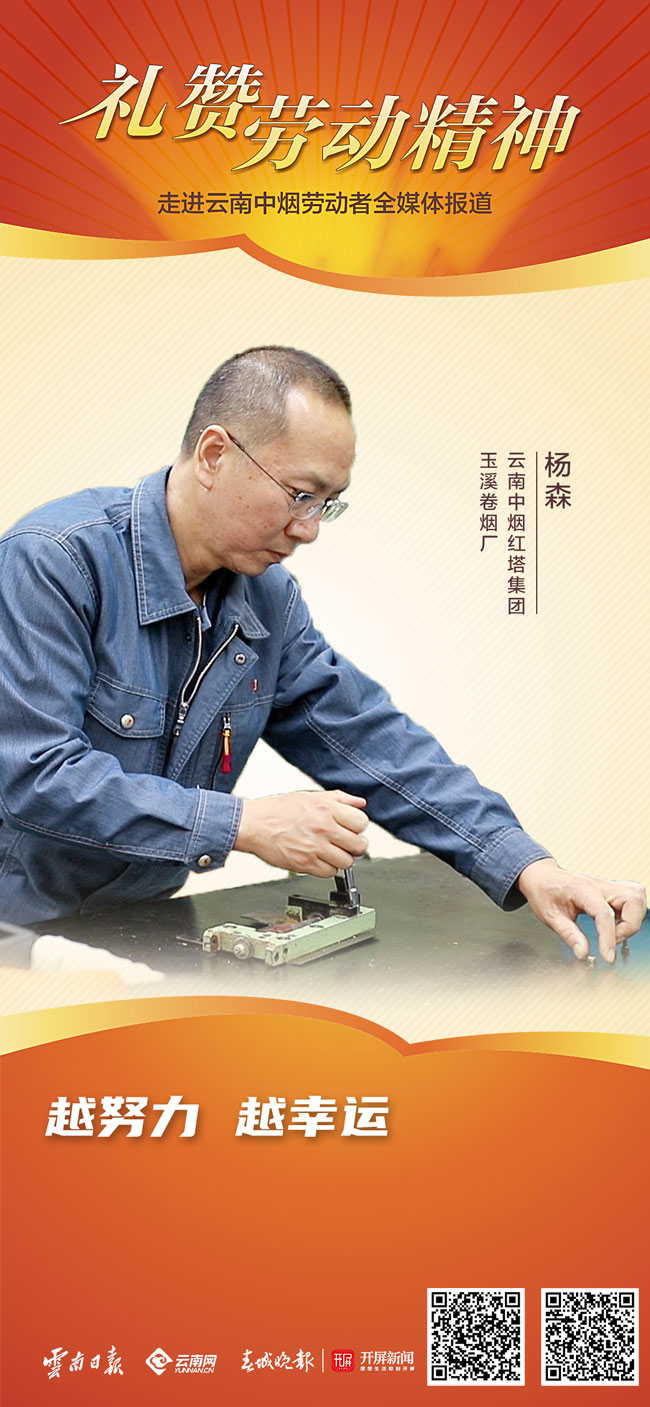 杨森,云南中烟红塔集团玉溪卷烟厂特级维修师,30年来一直在生产一线从事烟机设备维修和设备管理工作。
