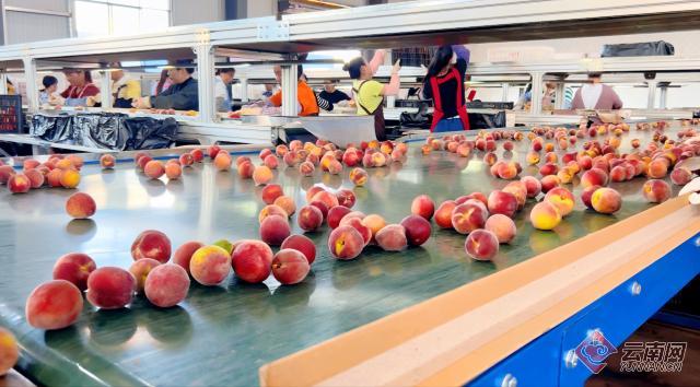桃花落尽随春去,初夏桃熟枝上悬。在位于文山壮族苗族自治州文山市德厚镇高速口现代农业产业园区的云南正果农业发展有限公司,冷藏分拣包装厂区里初选、光谱测糖、分拣、包装、打包、装箱、冷藏、配送等各个环节正在有条不紊地进行中,早熟的桃子早已穿上“文山牌”新装,准备奔向北京、上海、广州、深圳、重庆等一线城市“抢鲜”上市。