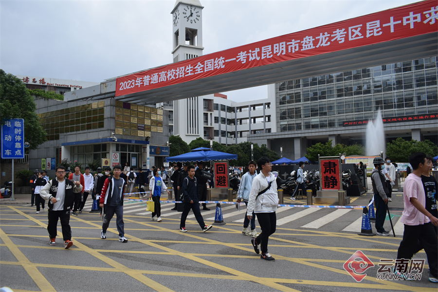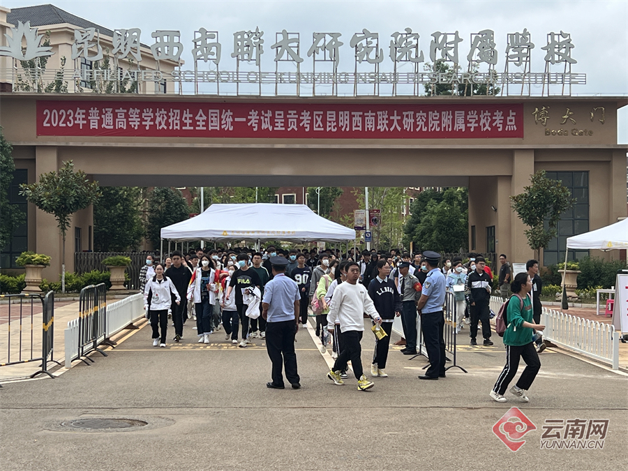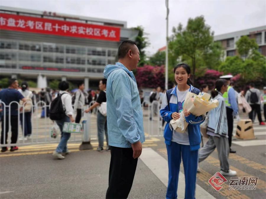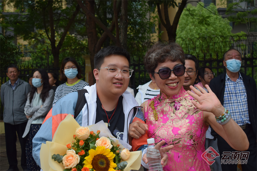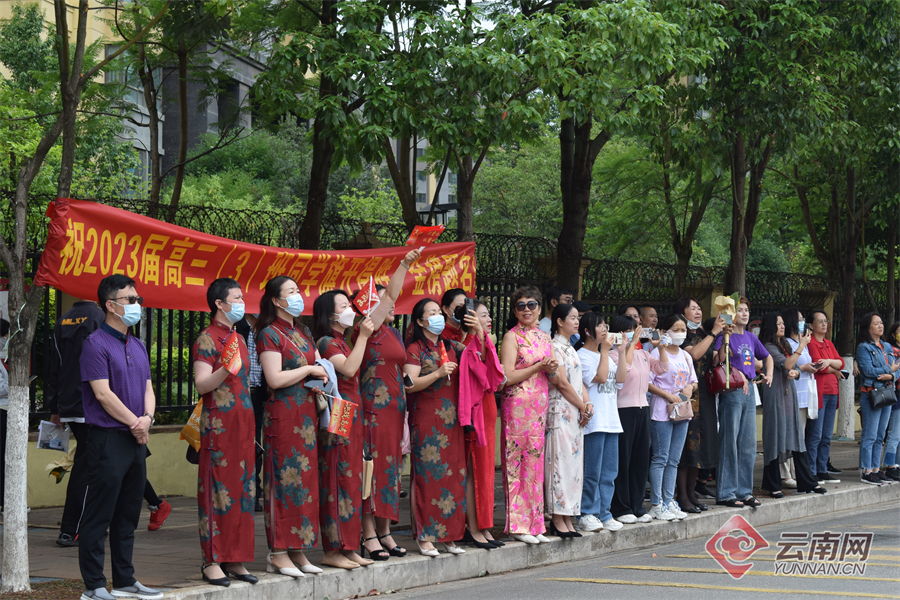 6月7日上午,考生结束2023高考首科考试,从容走出考场。家长或身穿旗袍或手捧鲜花,在考场外迎接考生。