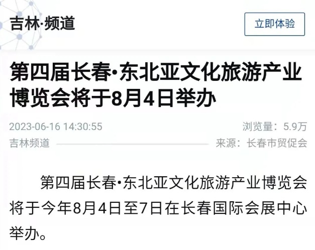 新华社客户端刊发《第四届长春·东北亚文化旅游产业博览会将于8月4日举办》,报道展会将展示文化旅游成果,对接国内龙头文旅企业,推进地区文旅产业高质量发展。