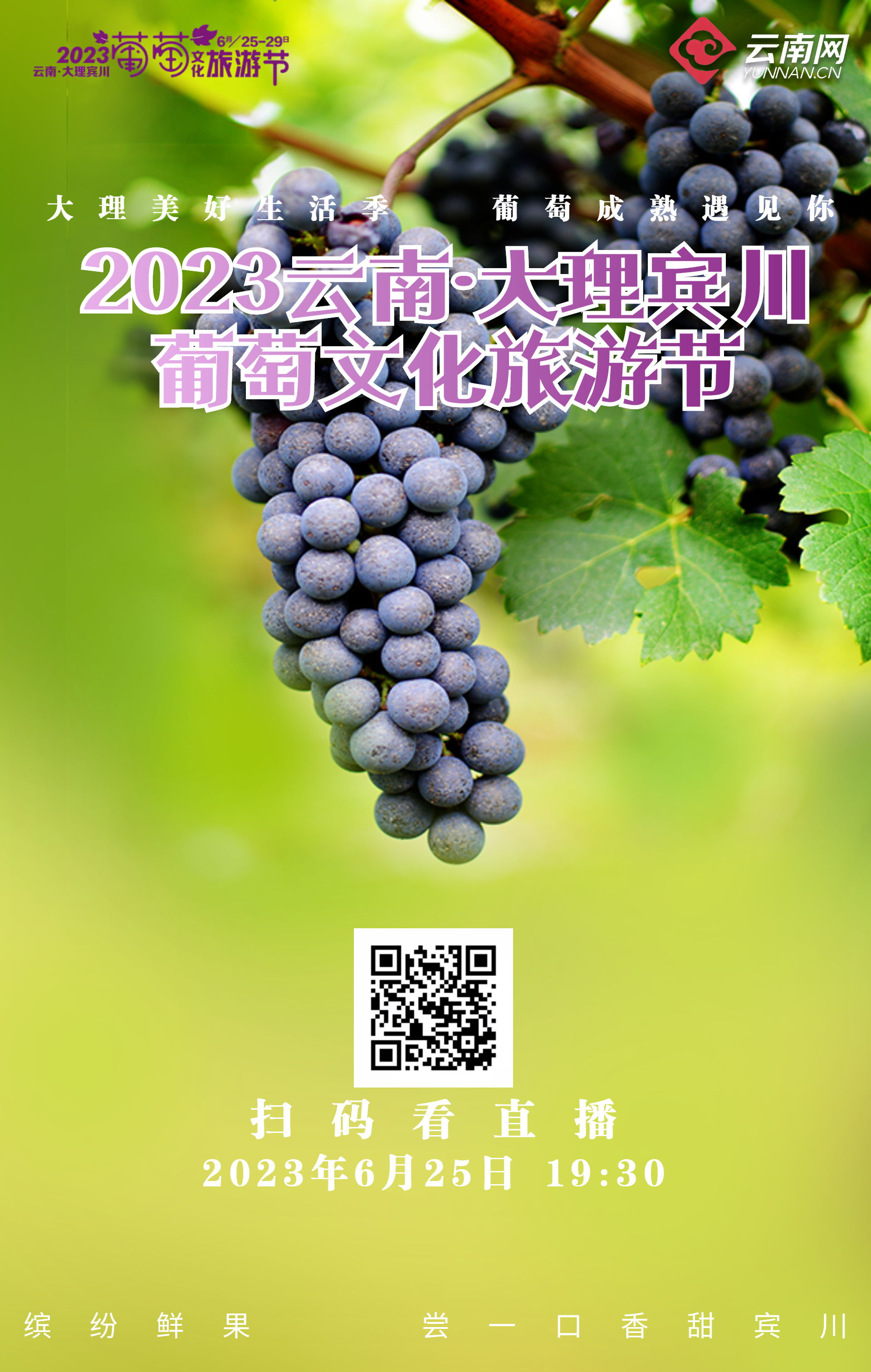 6月25日,“2023年云南·大理宾川葡萄文化旅游节”开幕式将与你相约,共同体验葡萄成熟的甜蜜!