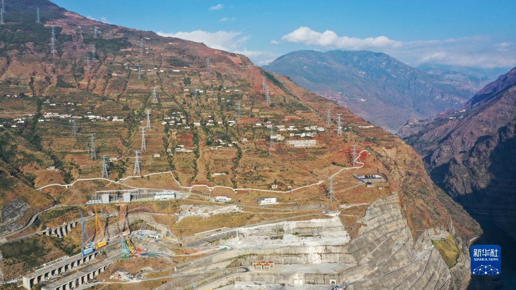 2022年12月19日,白鹤滩水电站一景(无人机照片)。新华社记者胡超 摄