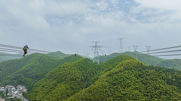 国网浙江电力员工验收白鹤滩—浙江特高压直流工程输电线路