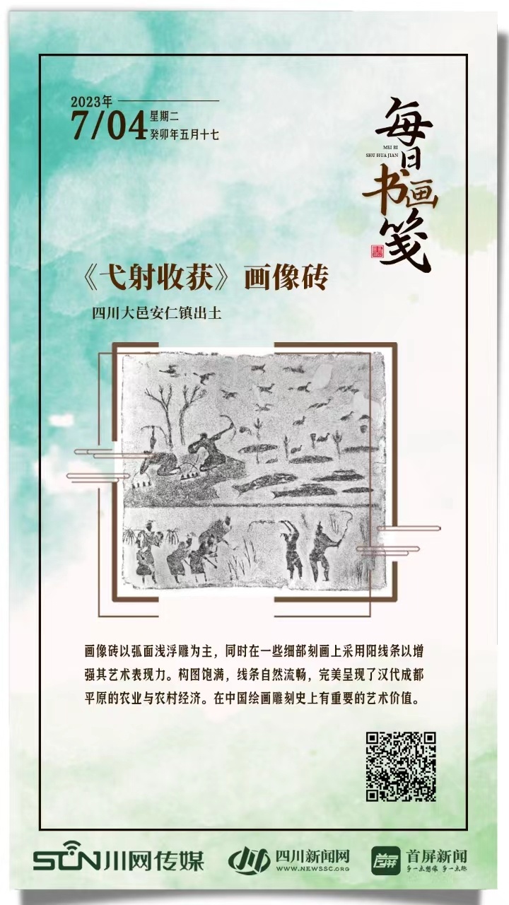 原标题:【每日书画笺】《弋射收获》画像砖:古代“摄影术”带你了解汉代成都人的农耕生活