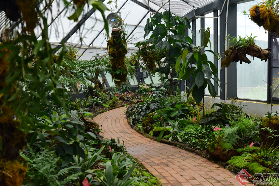该保育温室重点收集保育不能在昆明露天进行栽培,原产热带、南亚热带和需要高温高湿环境条件的极小种群野生植物及国家重点保护野生植物。由于保育温室需要创造高温高湿的环境,投入和管理成本高,为了在有限的空间范围内保育物种,在物种选择方面重点考虑草本、藤本和少数灌木,充分利用空间进行立体布置和景观营造,高富集栽培保育极小种群野生植物,并为科学研究和科学教育服务。