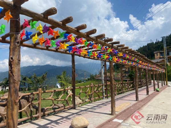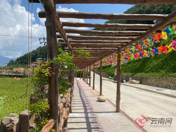 干净整洁的水泥路面覆盖全村,一条木栈道长廊直通村中心,所见之处皆披上绿色的夏装,装点的风车彩带在风中随风起舞,即将开门迎客的游泳池、生态蔬菜园等系列旅游配套设施正在收尾……