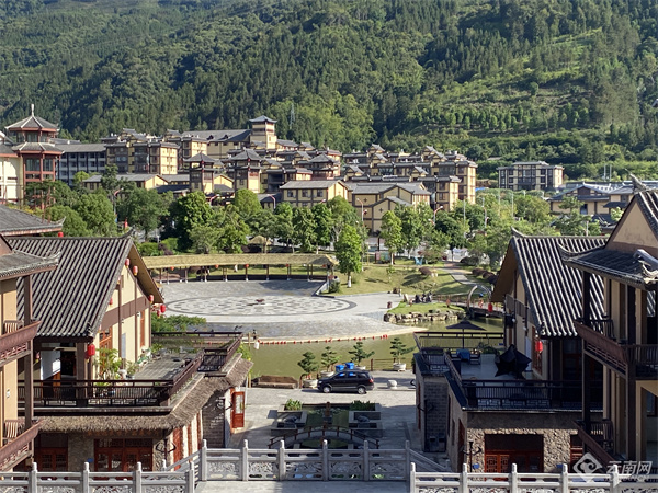 矗立在滴水苗城城门天桥之上,苗城全貌一览无遗,一幅笔墨精妙的山水人文画跃然眼前。沿着贯穿整个苗城的牧羊河水系信手漫步,河岸旁独具苗族风格的玉水寨、滴水寨、悦水寨等八个苗寨依水而生、错落有致。坡屋顶、小青瓦、米黄墙、吊脚楼等苗族苗寨建筑风格突出,蝴蝶、芦笙、牛角等苗族图腾灵巧地设计在每个角落。“我们构思出‘蓝脉绿网•宝石项链’的主线,以‘城景一体化’的思路,充分融入屏边特有的民族文化、边地文化、森林文化特色,统筹构建‘一带、一轴、五核心、多节点’的生态体系,建立蓝绿交织、内外一体的城市公园系统。”李永泉介绍道。