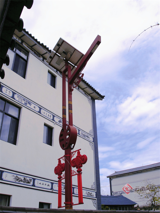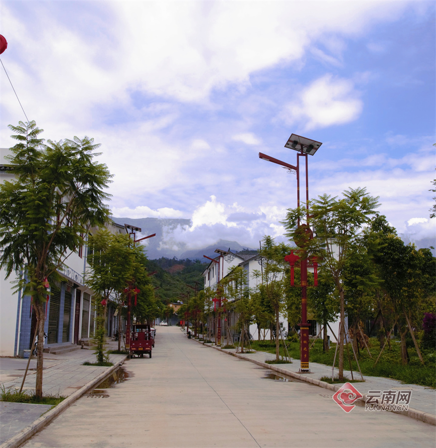 新建居民房:白色的墙体、红色的路灯,是白族文化和彝族文化的交融,是民族团结的真实写照