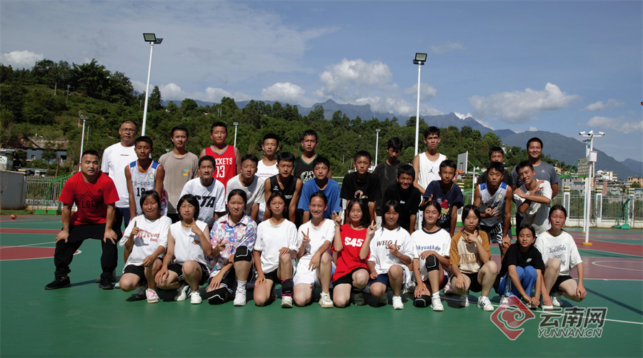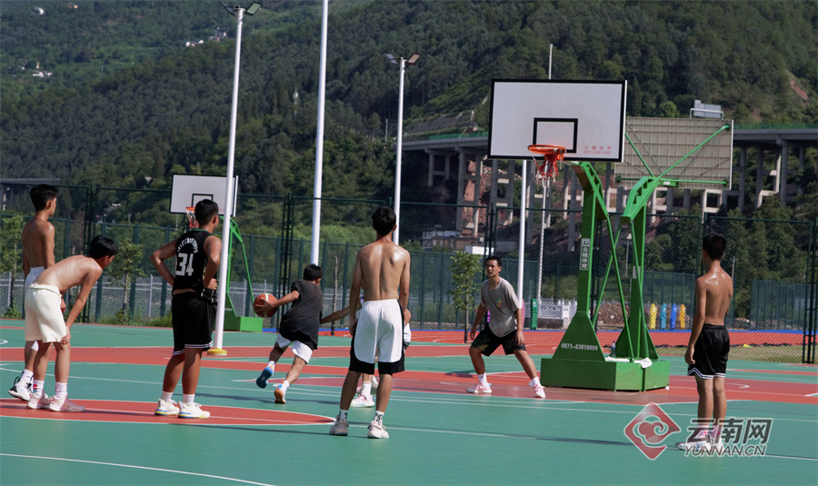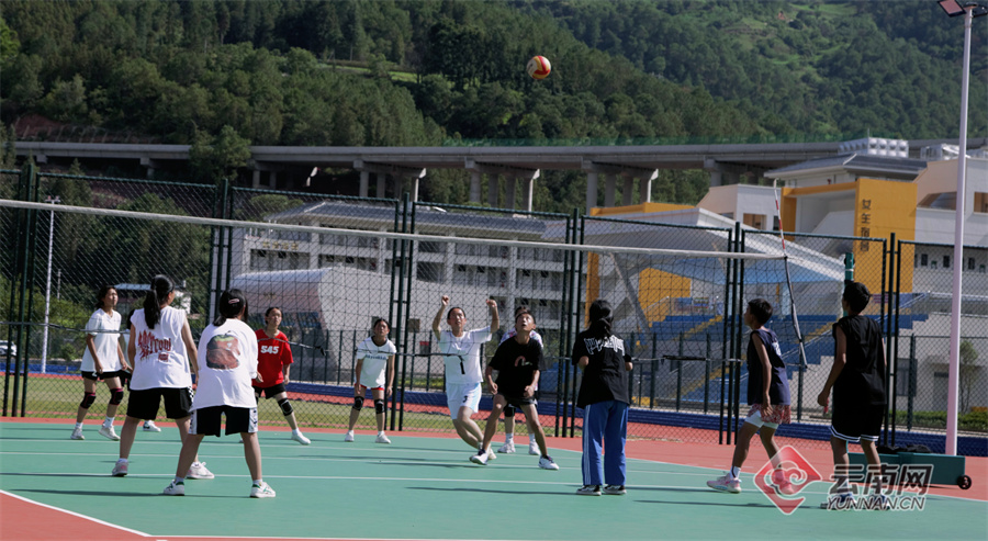 即将代表大理州参赛的一中篮球队、排球队,队员们在太阳下训练