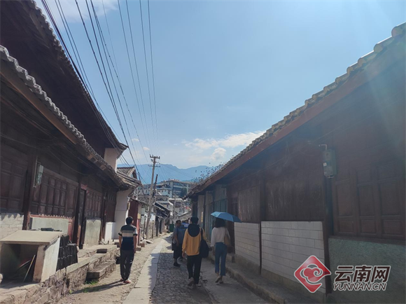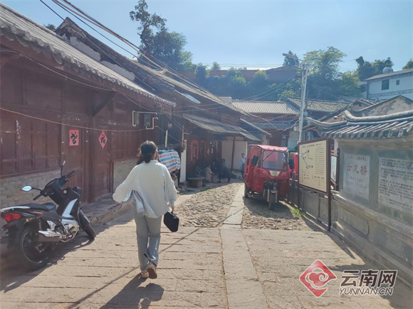 这样一段不宽敞的、不平坦的古道,驼铃声声,在历史的长河里流淌着马帮商队过往的商业辉煌,在宽约八尺的古道路面上走,时而经过一辆小三轮车,车辙轧过高低不平的石路时发出的嘎吱声响,承托起一个个家庭的温暖。