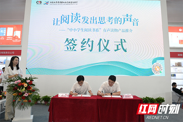 红网时刻新闻7月29日讯(记者 郭薇灿 蔡娟 任晔 摄影 李丹 管一桦)7月28日,由中南出版传媒集团主办、湖南电子音像出版社有限责任公司承办的“让阅读发出思考的声音——‘中小学生阅读书系’有声读物产品推介”活动在第31届全国图书交易博览会上举行。