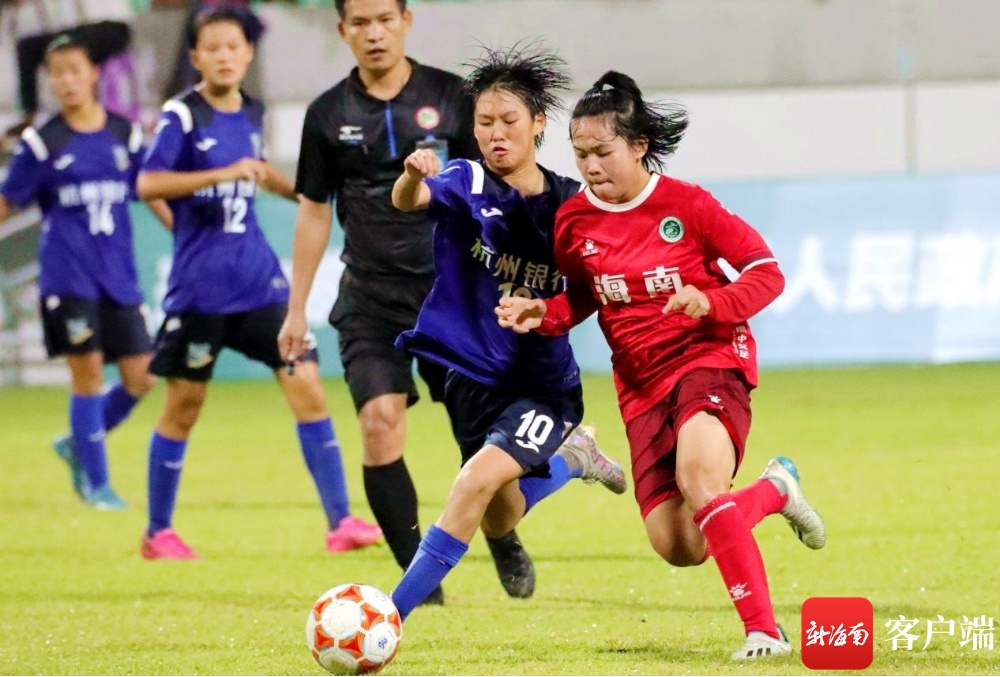 海南琼中女足(红)2:0取胜浙江杭州女足(蓝)。赛事组委会供图