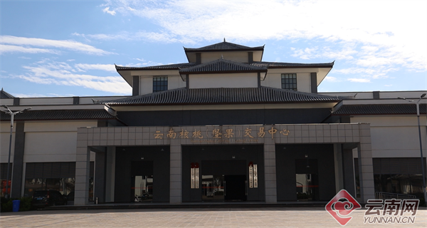 从杭瑞高速永平收费站驶出,沿着博南路向北行驶,三分钟左右的车程就可以到达一个汉唐风格的建筑群。其中,占地面积最大的便是2020年12月建成的云南核桃(坚果)交易中心。目前云南深纹核桃电子商务有限责任公司受永平县委托负责运营。