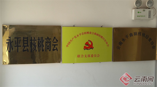 办公楼内,“云南永平曲硐核桃经营协会”的挂牌