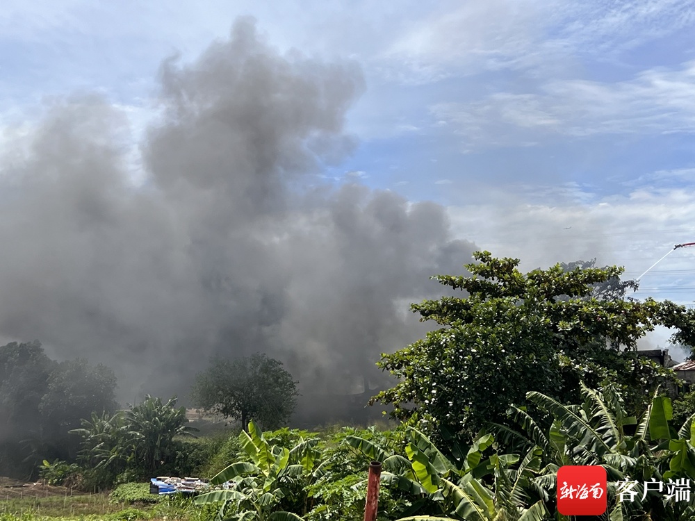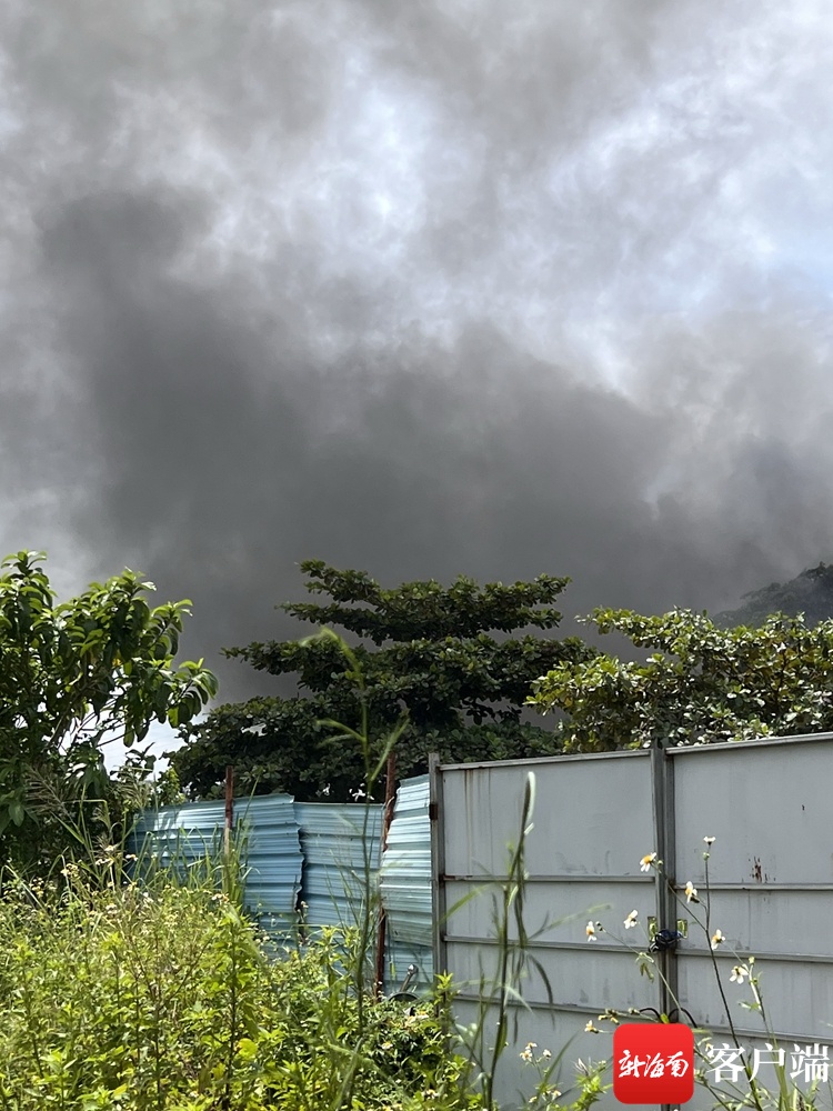 中午11时30分许,新海南客户端、南海网记者在火灾现场看到, 警方在整个火灾现场多个路口,均设置了警戒线,禁止社会车辆和闲杂人员靠近。消防救援人员正在通过泡沫消防车向着火点喷射消防泡沫,虽然距离起火时间已经过去约2个小时,但是现场仍然浓烟滚滚,可以不时看到有零星明火出现。