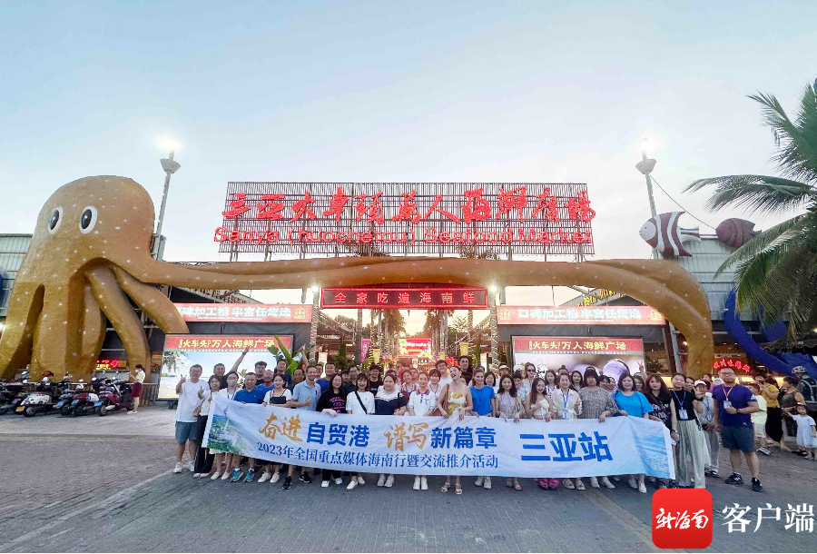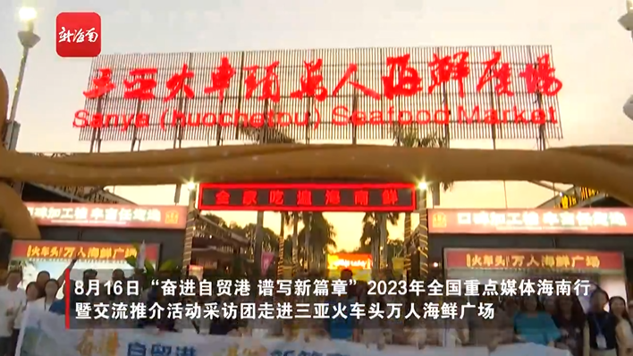 8月16日,“奋进自贸港 谱写新篇章”2023年全国重点媒体海南行暨交流推介活动采访团走进三亚火车头万人海鲜广场,打卡三亚美食地标,品尝色香味俱全的海鲜盛宴。