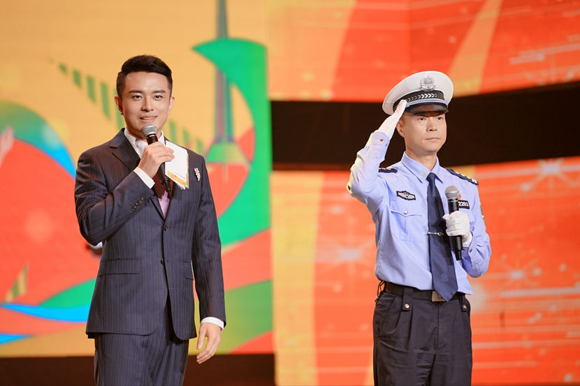 成都市公安局交通管理局第八分局勤务二中队中队长宋然在舞台上讲述了他和队友不辞辛劳坚守岗位的故事