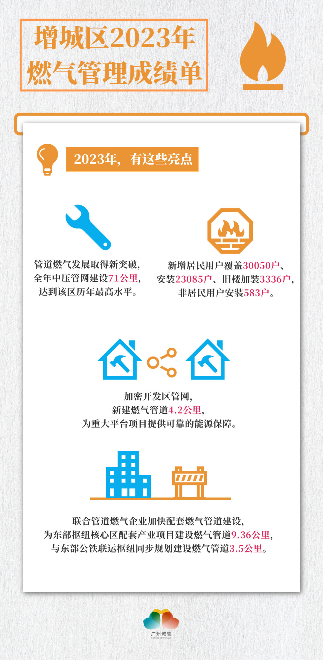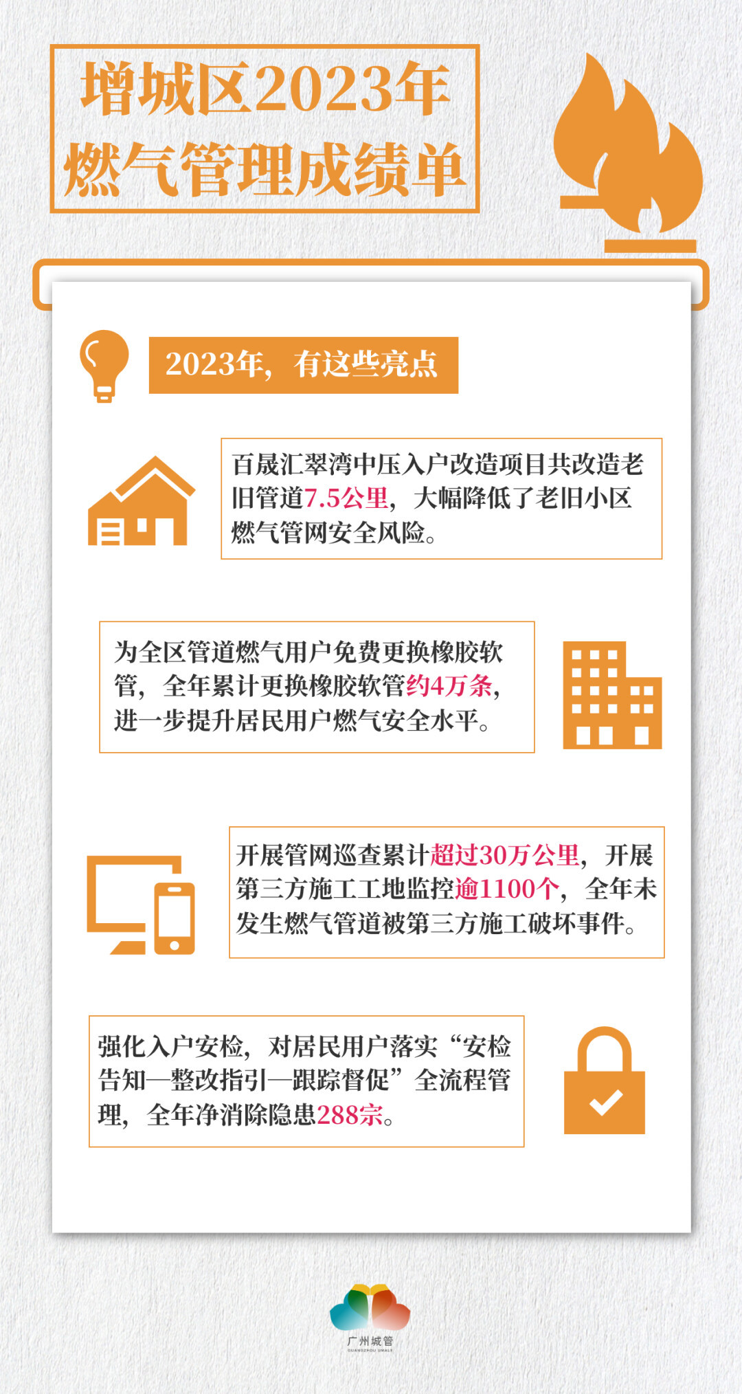 为进一步保障居民用气安全,2023年增城区持续推进燃气项目建设,改造老旧管道、更换橡胶软管、开展管网巡查……进一步提升居民用户燃气安全水平。