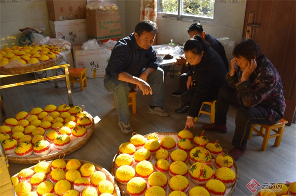 同行的施甸民俗学者徐幸光说,美美小花糖不仅是零食,过年期间,家家户户堂屋供桌上必须要摆上两个小花糖,这样才显得喜气、祥和,也是对祖先的怀念。那圆球形的小花糖,也象征着一家人团团圆圆、平平安安、红红火火。将米花糖用于各项过年祭祀活动,已经成了施甸一大特色、重要民俗。