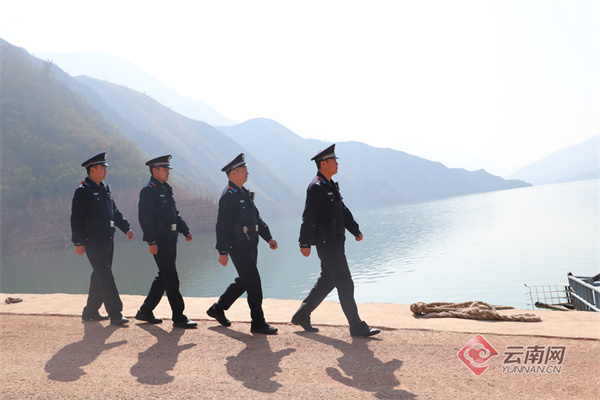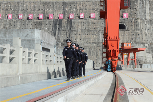 “画卷”内,巧家县公安局白鹤滩分局局长肖明辉和他的队友们,迈着整齐的步伐,和无数个平常的日子一样,走进这群山环抱的峡谷当中,担负起白鹤滩水电站的守卫任务。