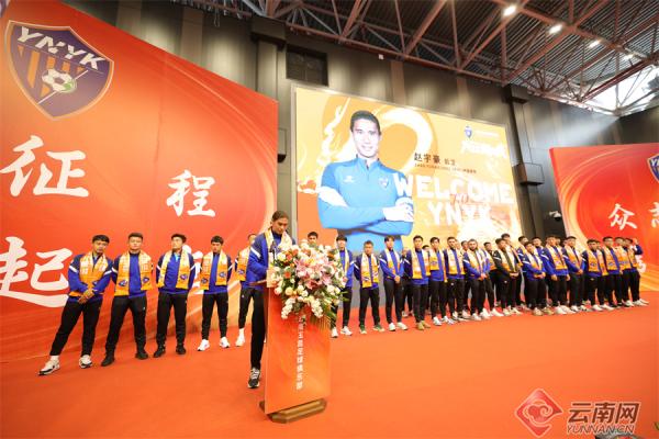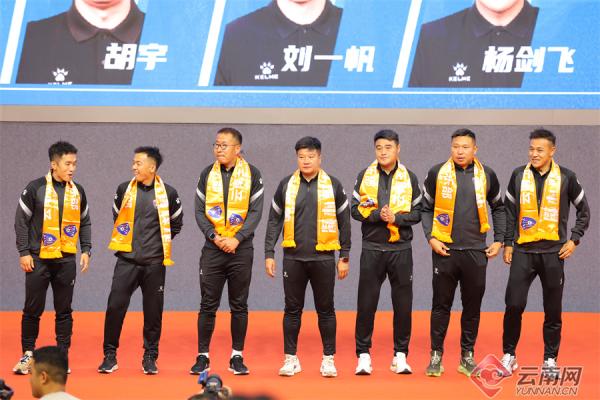 出征仪式上,李金羽率领教练组和所有球员集体亮相,作为球队新赛季的队长,出生在云南省昆明市的赵宇豪代表球员宣誓。在闯荡了中超多年之后,赵宇豪在这个赛季重回家乡球队效力,“能够为家乡球队效力是一种荣幸,也让我肩负了更大的使命,玉昆是一支充满活力、激情和上进心的球队,我们会全力以赴踢好每一场比赛,踢出云南足球的精气神,为云南足球的发展贡献力量。”