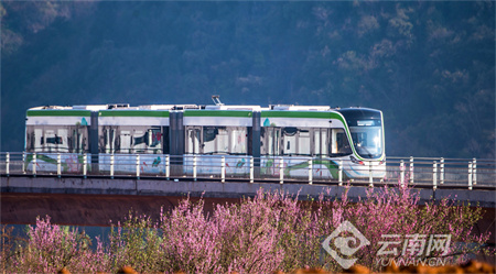 图为文山普者黑有轨电车行驶中