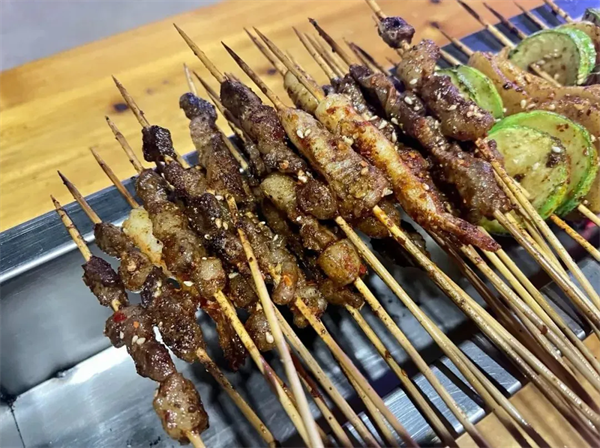 昭通小肉串的特色就是“小”,细细的竹签串上小块的黄牛肉,让人垂涎欲滴。不同的串法能让食客体会到筋的脆、肉的嫩、油脂的饱满。