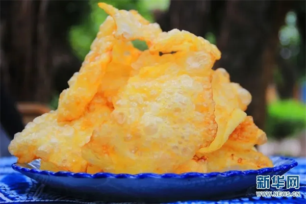 “云南十八怪,牛奶做成片片卖”,乳扇是主产于大理白族自治州洱源县的特色奶制品,呈乳白、乳黄之色。乳扇直接生吃,味道油而不腻,鲜醇清香;油炸乳扇嘎嘣脆,颜色金黄,佐以白糖,口感酥脆;烤乳扇嚼劲十足,边烤边卷,抹上玫瑰花酱,香甜四溢,回味无穷。