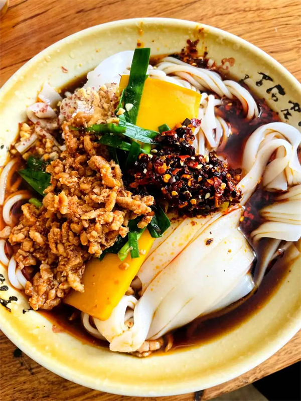 凉米线、凉卷粉清爽的口感仿佛能驱散夏日的炎热。特制的酸甜汤汁,加上各种配菜,如豆芽、韭菜、豆腐皮等,再配上细软的米线,一口下去,酸甜开胃,让人回味无穷。