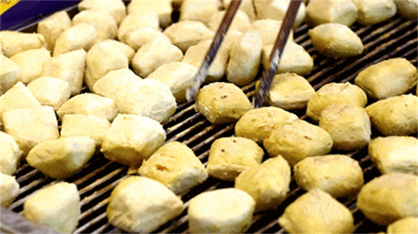豆腐是云南红河建水的知名小吃。一枚枚方形的豆腐,犹如“拓印”出来一般,一寸见方,乖巧得惹人喜爱。将豆腐放在烤架上边烤边转动,待豆腐鼓起变成迷人的焦黄色,散发出阵阵豆香味,就可以配着辣椒面等蘸料吃,外焦里嫩的豆腐吃到嘴里滚烫柔软,一口一个,边哈气边吃,让人欲罢不能。