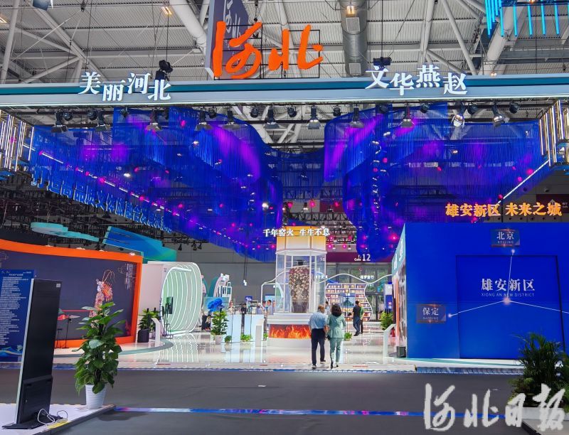 河北展区由序厅、跟着节气游河北、倾心匠制、数字赋能·智能转型、融合传播·逐梦前行五大板块组成,面积800平方米、展品近千件,均创历史新高。展区通过人屏互动、XR/VR 互动体验、U3D等高科技手段,以“静动结合、虚实相接”的展示形式,让观众沉浸感受河北历史文化的独特魅力。