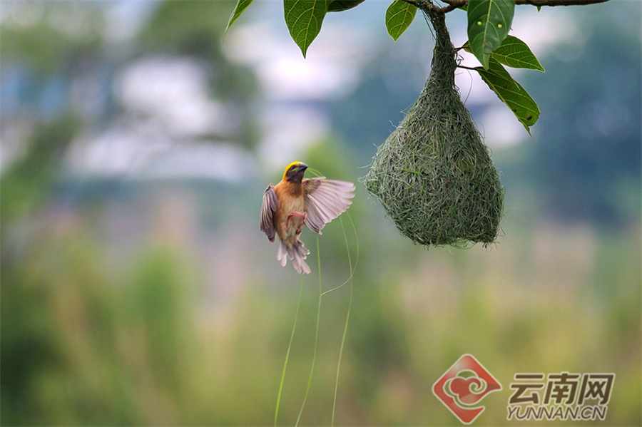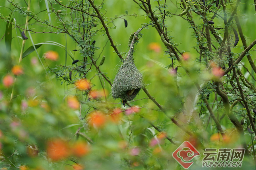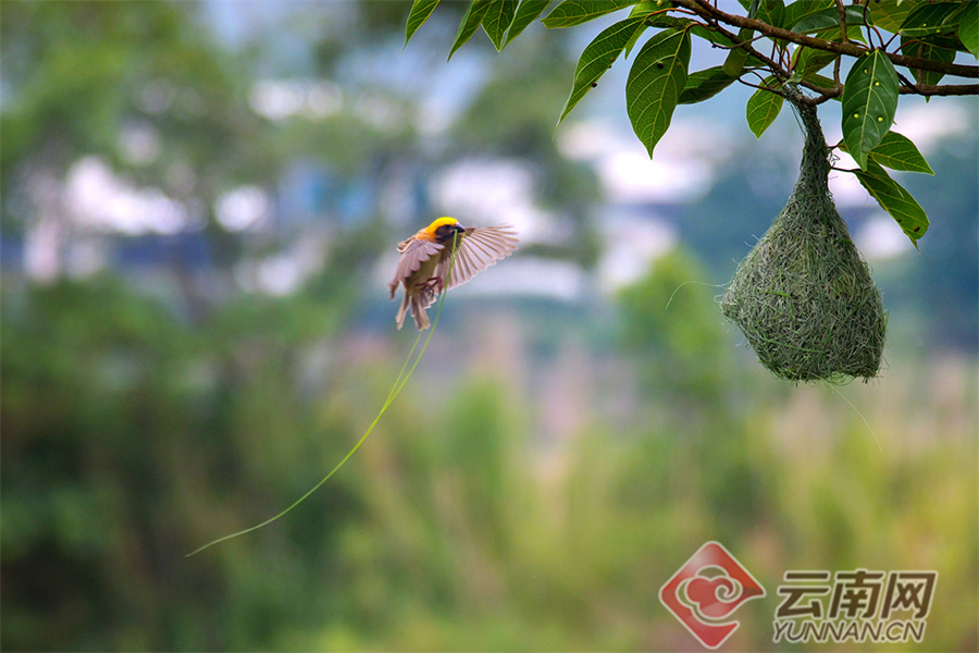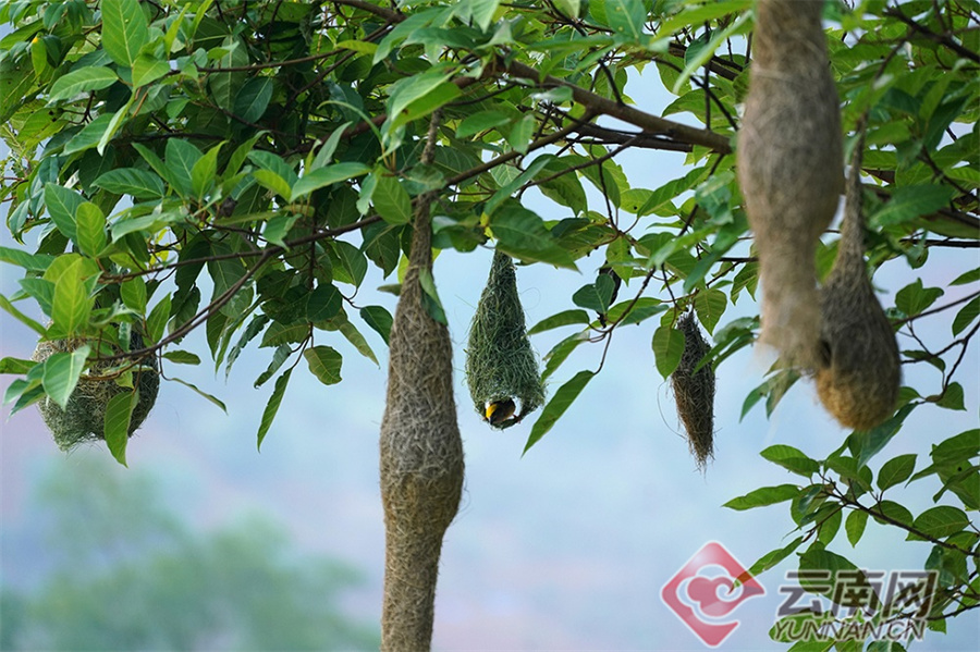 “黄胸织布鸟在湾甸乡主要分布于勐波罗河流域的上甸、下甸、大城、小街子村,因为黄胸织布鸟的织巢工艺比较精巧,被称为鸟界‘最美纺织工’。”昌宁县湾甸傣族乡文广中心主任李亚洁说。