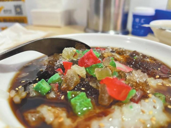 除了凉米线,冰稀饭也是玉溪民间小吃中的佼佼者。用本地精选糯米煮成的稀饭,软糯香甜,入口即化。加入冰块后,冰爽的感觉瞬间直达心底。红糖稀的甜蜜、芝麻的香脆、红枣的醇厚、红绿丝的酸甜,还有本地特产蜜饯的独特风味相互融合。有的店家还会贴心地加上时令水果,每一口都充满惊喜。搅拌均匀后送入口中,糯米的柔软与各种配料的香甜完美结合,那冰凉的感觉仿佛是夏日里的一阵清风,带来无尽的清凉与甜蜜。