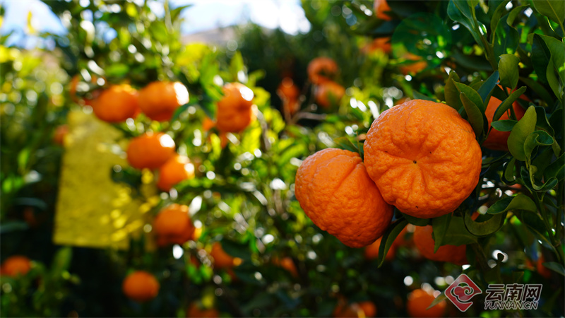 在宾川县大营镇排营村委会椪柑种植户邬建华的果园里,冬日暖阳下,一树树黄澄澄的椪柑显得格外惹眼。 “我现在椪柑挂果的有50亩左右,产量15万斤左右,以现在的价格可能在30万元左右的效益。” 邬建华介绍说。宾川县地处金沙江南岸干热河谷地区,炎热少雨,昼夜温差大,日照时间长,光热充足,是全国有名的晚熟柑桔优势产区,拥有“宾川柑桔”国家地理标志证明商标,“宾川柑橘(宾川柑桔)”被农业农村部认定为国家地理标志保护产品。椪柑属于宾川柑桔中的中熟品种,皮易剥离,果肉多汁,脆嫩化渣,可溶性固形物含量高,于11月至次年2月成熟上市。