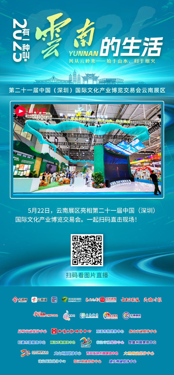 本次文博会,云南展区以“云岭的风”为主线,打造“风生水起·文化产业繁荣发展”“风和日丽·绿色生态焕发新机”“风云际会·开放交流和美与共”三大板块,通过数字多媒体、静态展陈、现场展演等方式,将云南的自然美景和人文风情带到深圳,全方位、立体化展示云南文化产业发展新成果,诚邀全球宾客循着风的轨迹,走进“有一种叫云南的生活”。