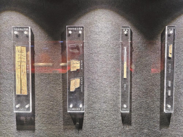 河泊所遗址出土的“滇池以亭行”简牍等。 记者 刘薇薇 摄